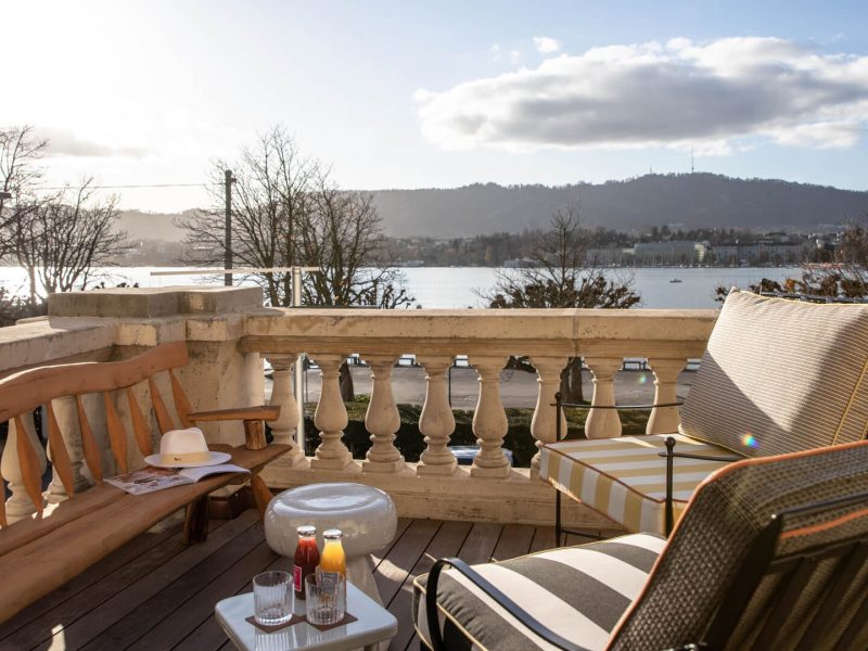 Facing south, these rooms have a private balcony from where you can see people strolling along the lakeside promenade, the green of the plane trees in summer, the white sails of the boats, the Alps in the distance… And why not take advantage of this magical view from the bed, judiciously placed in the center of the room.